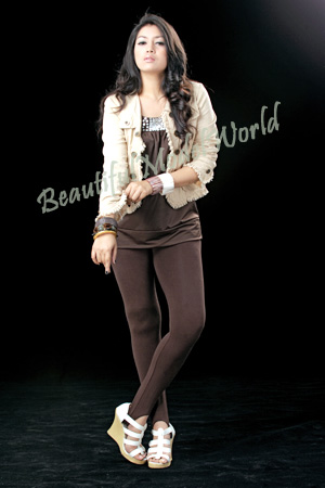 Myanmar Model, Christina with lovely brown fashion dress